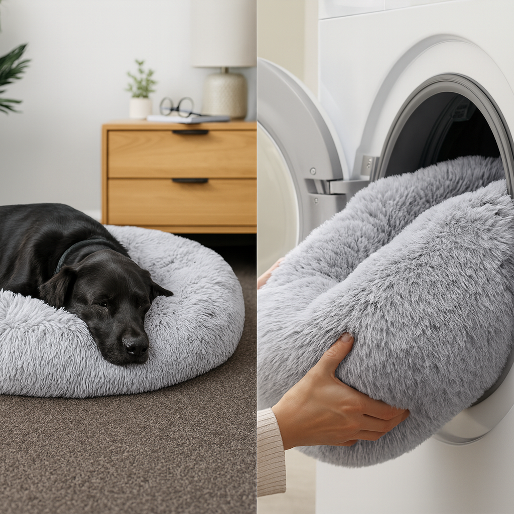 Su diseño circular con bordes elevados está pensado para recrear la sensación de refugio y seguridad que experimentaban cuando eran cachorros, acurrucados junto a su madre y hermanos.